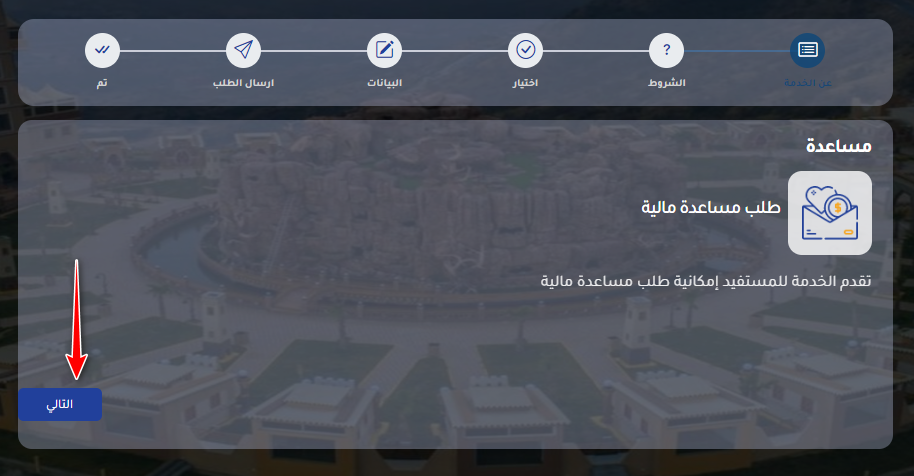 طلب مساعدة مالية - أختر مساعدة شخصية أو بالوكالة ثم أضغط التالي.