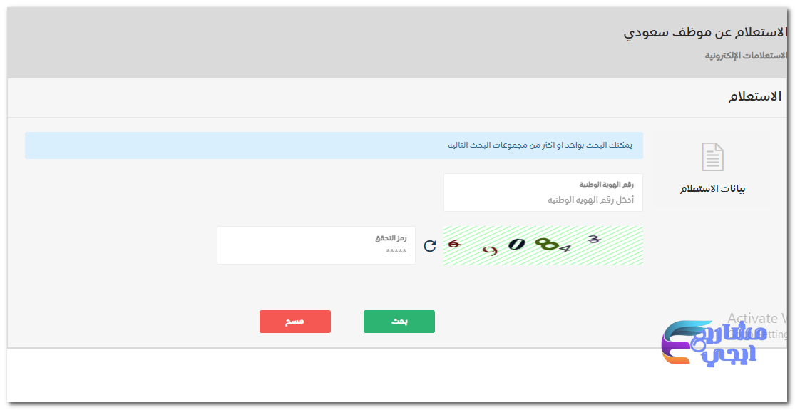 - تقوم بادخال رقم الهوية ورمز التحقق الموضع امامك وننقر على بحث.